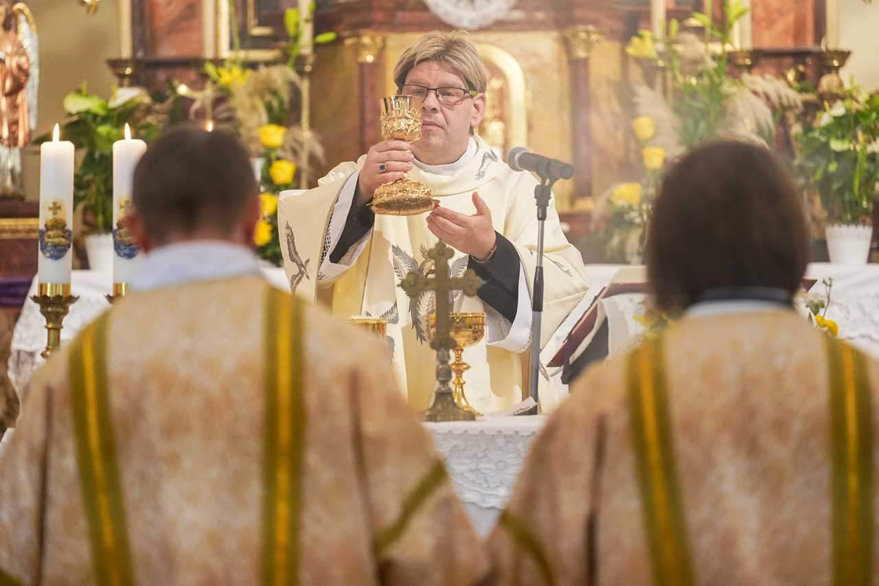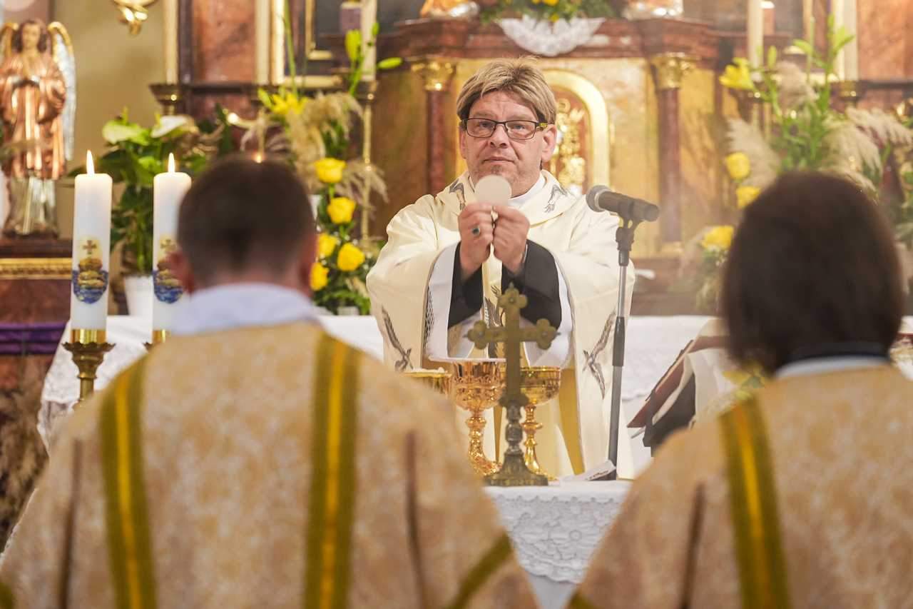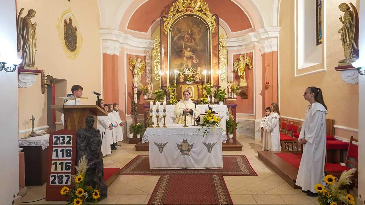 A vasárnap délelőtti ünnepi szentmisére a plébániához tartozó valamennyi településről érkeztek hívek. Szentbeszédében Heiter Robert Gottfried plébános kiemelte: Isten az őrzőangyalokkal segítséget ad az embereknek, hogy életünket Jézusra tekintve tudjuk élni, döntéseinket így meghozni. Az angyalok a Szentírásban különös jelentőséggel bírnak, hiszen ők Isten küldöttei, akik által beavatkozik a történelembe. Névszerint három angyal nevét ismerjük, akik neve egyben feladatot is ad számunkra, utalt rá Heiter Robert Gottfried. Gábor neve azt jelenti: Isten harcosa. Én is Isten harcosa vagyok? - tette fel a kérdést a híveknek a plébános. Rafael nevének jelentése: Gyógyít az Isten. A kérdés, hogy amikor erőszak uralkodik körülöttünk akkor tud-e az Isten általam gyógyítani. Mihály nevének jelentése: ki olyan mint az isten? De a kérdés lehetne kijelentés is, mondta Heiter Robert Gottfried, hiszen Isten arra hívott minket, hogy folyamatosan tökéletesedjünk, hozzá váljunk hasonlóvá.